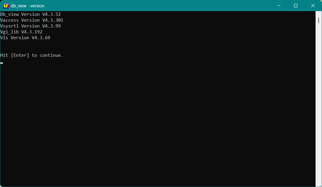 WIN If you use these qualifiers on a graphical program like db_view or vdraw, you will get an additional window. You will need to hit the Enter key to close the window. Even for the command line programs, you will need to hit Enter.